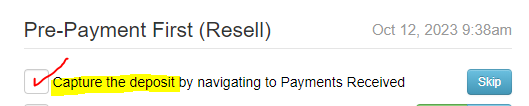 - Once full payment has been linked to the guest’s record ensure the guest’s has paid the correct remaining balance. Then check mark the corresponding step in the task list